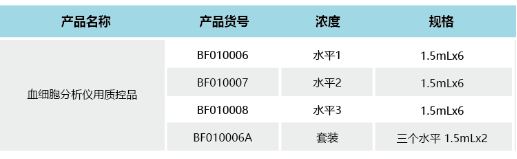 本产品为非定值质控品,用于红细胞(RBC)、白细胞(WBC)、血红蛋白(Hb)、血小板(PLT)和红细胞比容(Hct)的室内质量控制