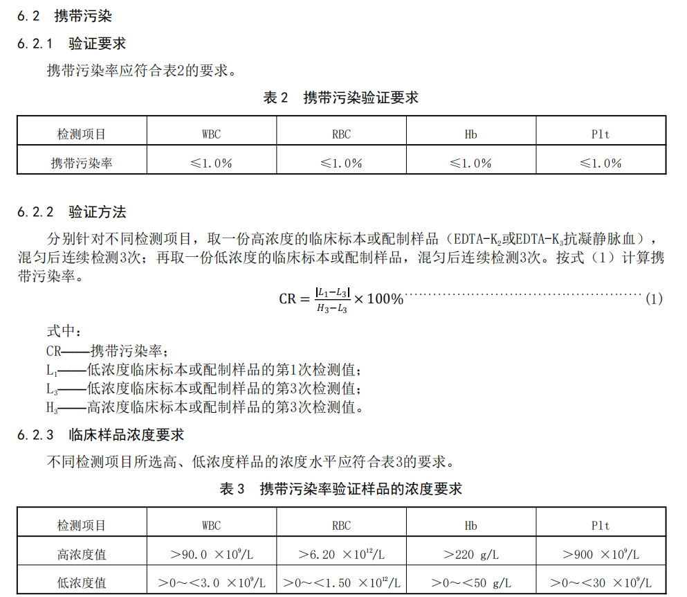 2、更改了血细胞分析携带污染率的检测要求和验证样本的浓度要求