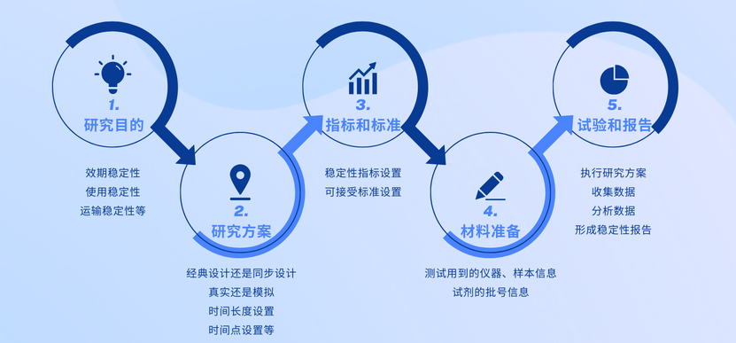 产品校准品的稳定性研究,可在储存周期的不同时间点,使用更高级的测量程序或冻存的工作校准品校准测量系统,来评价产品校准品的准确度、瓶内/瓶间均一性等指标。