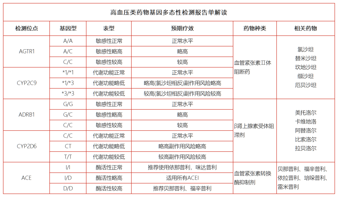 ---共识推荐高血压用药相关基因CYP2D6、CYP2C9、ADRB1、AGTR1、ACE多基因型别覆盖;