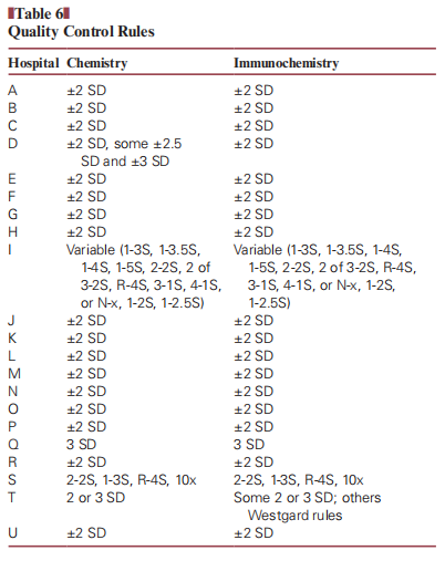 21家医疗中心实验室如何选择QC规则(详见表6)