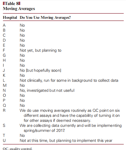 21家医疗中心实验室使用移动均值法的情况(详见表8)