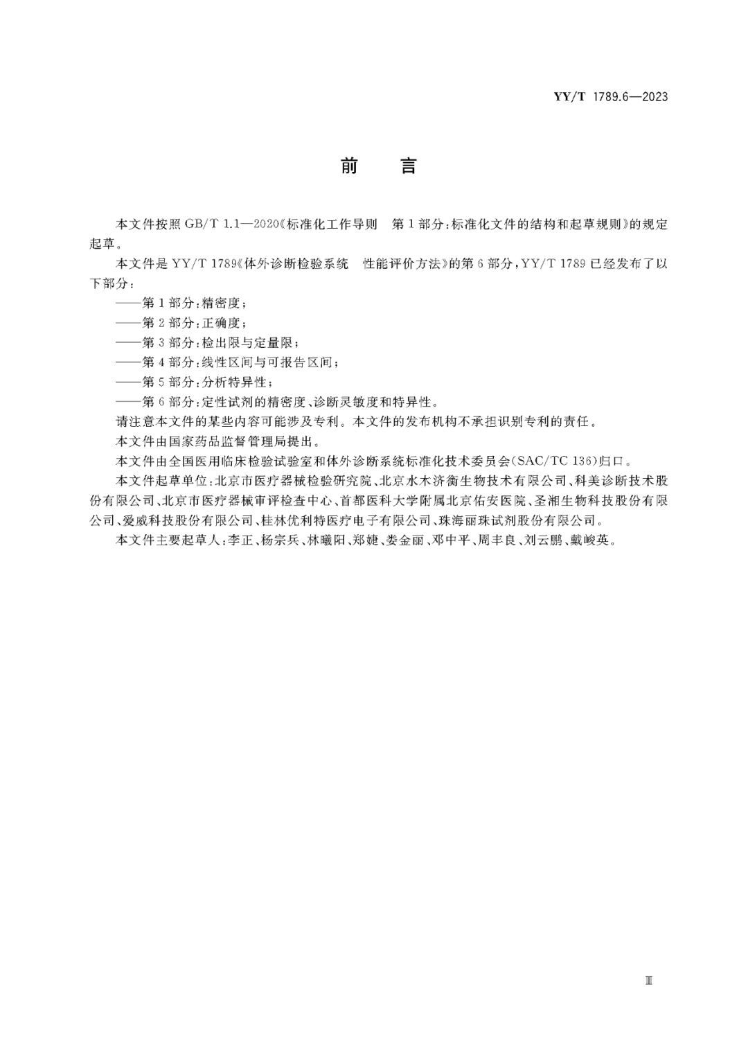 2023年1月13日,国家药监局发布行业标准《体外诊断检验系统 性能评价方法第6部分:定性试剂的精密度、诊断灵敏度和特异性》YY/T 1789.6—2023,该标准于2024年1月15日实施!