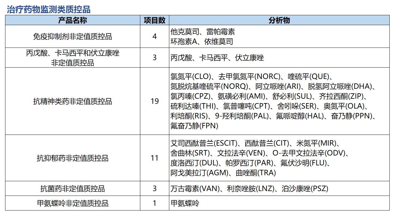 其中丙戊酸、卡马西平常是首选药物,监测这些药物的不良反应及血药浓度就尤为重要。随着质谱技术在医学检验领域的不断推广和普及应用,其在治疗药物监测方面也发挥出了越来越重要的作用。为了满足质谱平台质量控制的需求,水木济衡研发上市了适合市场上主流质谱平台的癫痫等项目的质控品。