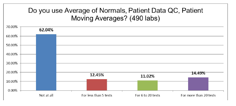 考虑到当今实验室面临的压力,实验室经常觉得他们必须发放病人的结果,即使是失控的结果。但我们看到仍然有将近50%的实验室从来没有这样做过。略低于三分之一的人很少这样做。但有十分之一的实验室每周或每天都在这么做。