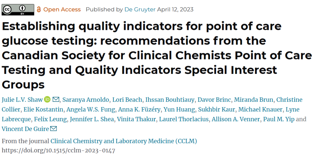 这篇来自加拿大专业协会POCT工作组提供的数据为我们国内医疗机构改善POCT质量管理提供了参考和借鉴的依据。感兴趣的读者可以研读原文,原文链接如下: