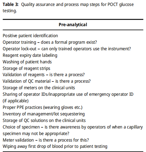 表3  POCT血糖检测的质量保证和流程分解步骤