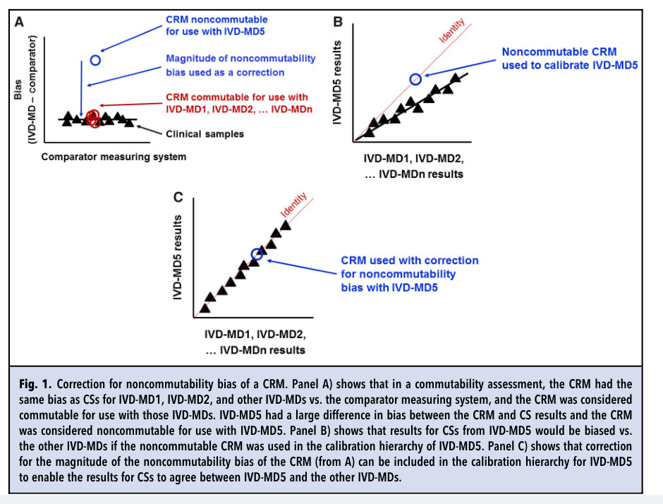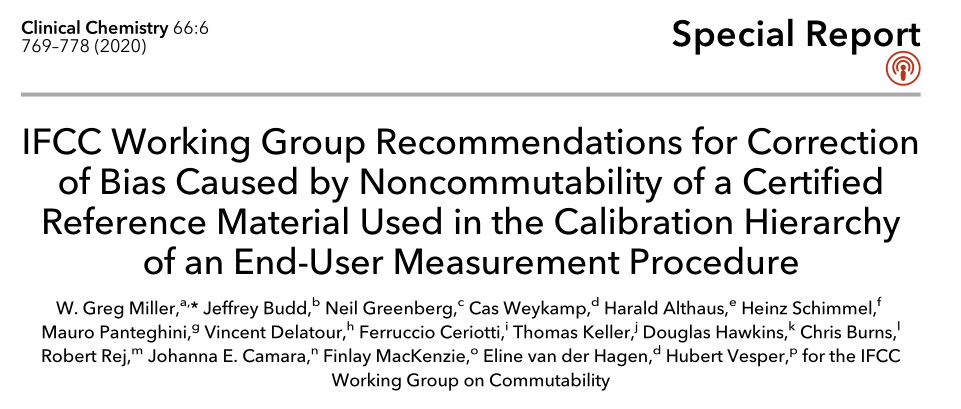 —Miller WG, Schimmel H, Rej R, Greenberg N, Ceriotti F,Burns C, et al. IFCC Working Group recommendations for assessing commutability part 1: general experimental design. Clin Chem 2018;64:447–54.