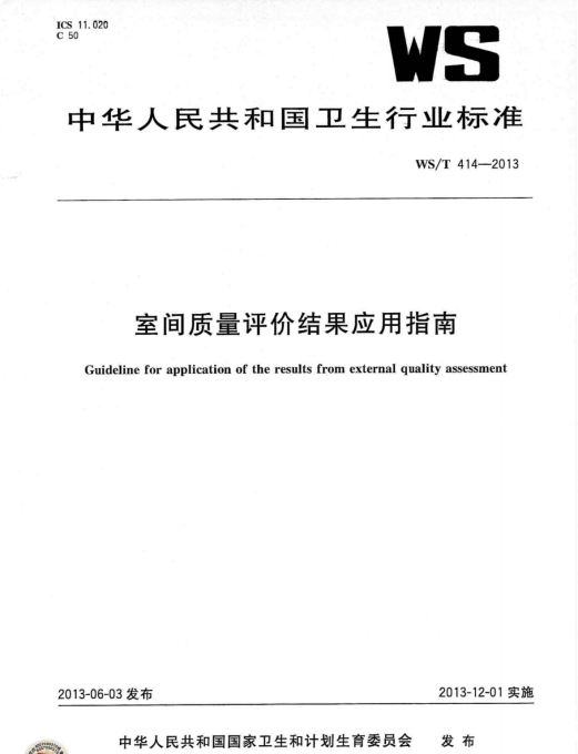 WS/T 414-2013 《室间质量评价评价结果应用指南》